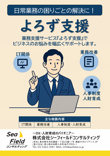 業務支援サービス『よろず支援』で皆さまのビジネスのお悩みを幅広くサポートしていきます。